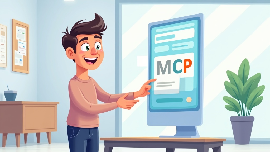 Cartoon illustration of a person integrating MCP into Django app, happy expression