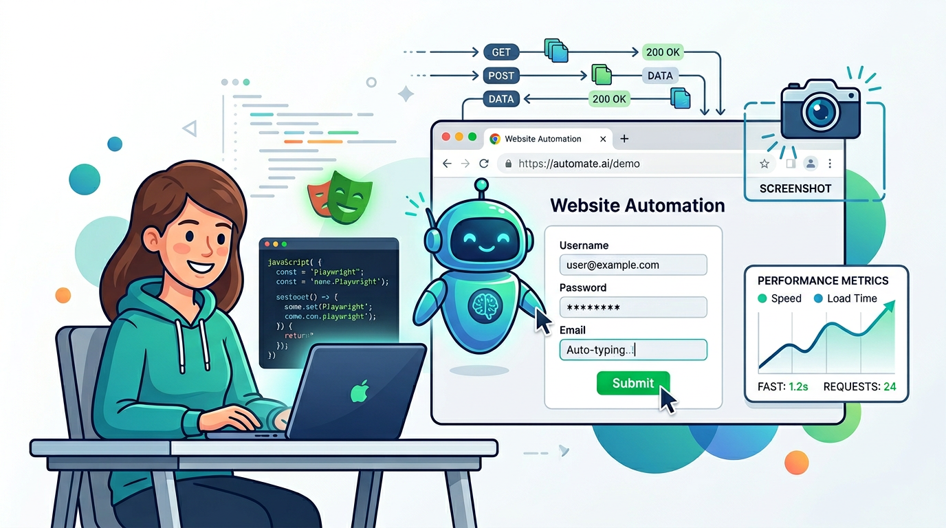 "How fast does this page load on a slow 3G connection?"Emulates throttled network, navigates, measures timing